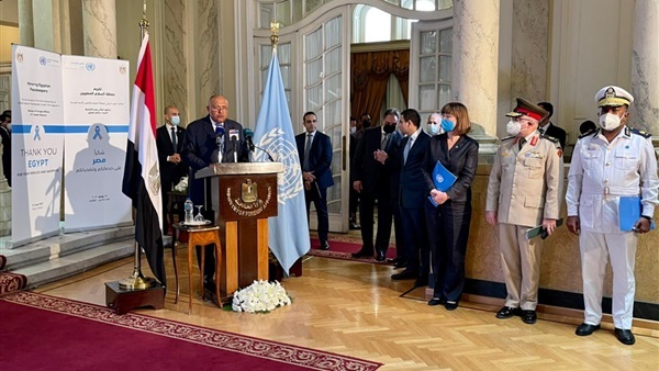 Ägypten trägt derzeit mehr als 3.000 Frauen und Männer bei, die ihre Funktionen unter der Schirmherrschaft von der Vereinten Nationen, sagte Choukry in einer Rede bei der Zeremonie, die anlässlich des Internationalen Tages der Friedenstruppen der Vereinten Nationen im El-Tahrir-Palast in Anwesenheit von UN-Beamten und Vertretern der Ministerien für EA, Verteidigung und Inneres gehalten wurde sowie in Ägypten akkreditierte ausländische Botschafter.
