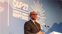 Der ägyptische Außenminister, Leiter der UN-Klimakonferenz COP27 kündigt die Sharm El-Sheikh-Agenda zur Anpassung an den Klimawandel an.